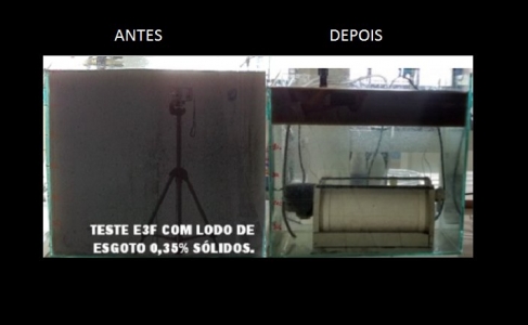 Flotação do lodo de esgoto proveniente de estações convencionais de tratamento por 'LODOS ATIVADOS", simulando a extração diretado Tanque de aeração onda a concentração se sólidos é de aproximadamente 0,35%. Veja o vídeo: "E3F Diluição 03Pct Tq AeraçãoCont", basta rolar a página mais abaixo...