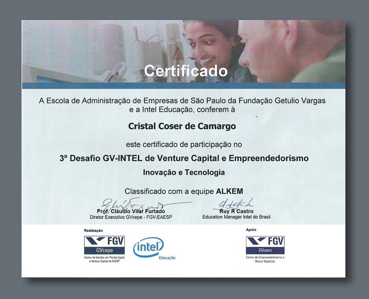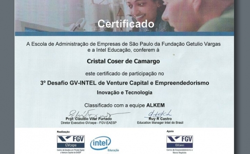 A equipe ALKEM conquistou um dos mais importantes prêmios de Empreendedorismo promovido pela Fundação Getúlio Vargas e a Intel, na etapa Internacional a equipe ALKEM participou no IBTEC (nov/2008) como representantes do Brasil na Intel+UC Berkeley Technology Entrepreneurship Challenge da Universidade da California em Berkeley, EUA.