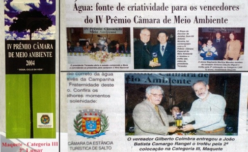 A Câmara de Vereadores da Estância Turística de Salto realizou a cerimônia de entrega do IV Prêmio Câmara de Meio Ambiente que este ano de 2004 que trouxe o tema "Água, o Ciclo da Vida".